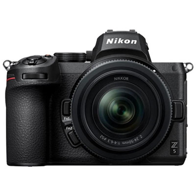 This is a Geek Squad Certified Open Box Product. See below for more information. Take your photography to the next level with the Nikon Z5 full-frame mirrorless camera. Equipped with a full frame CMOS sensor, this camera lets you shoot 4K Ultra HD videos and capture crystal-clear photos, even in low light conditions. Its dual UHS-II SD card slots allow you to store numerous photos and help transferring them quickly to your laptop. | Open Box - Nikon Z 5 Full-Frame Mirrorless Camera with NIKKOR Z 24-50mm Lens Kit