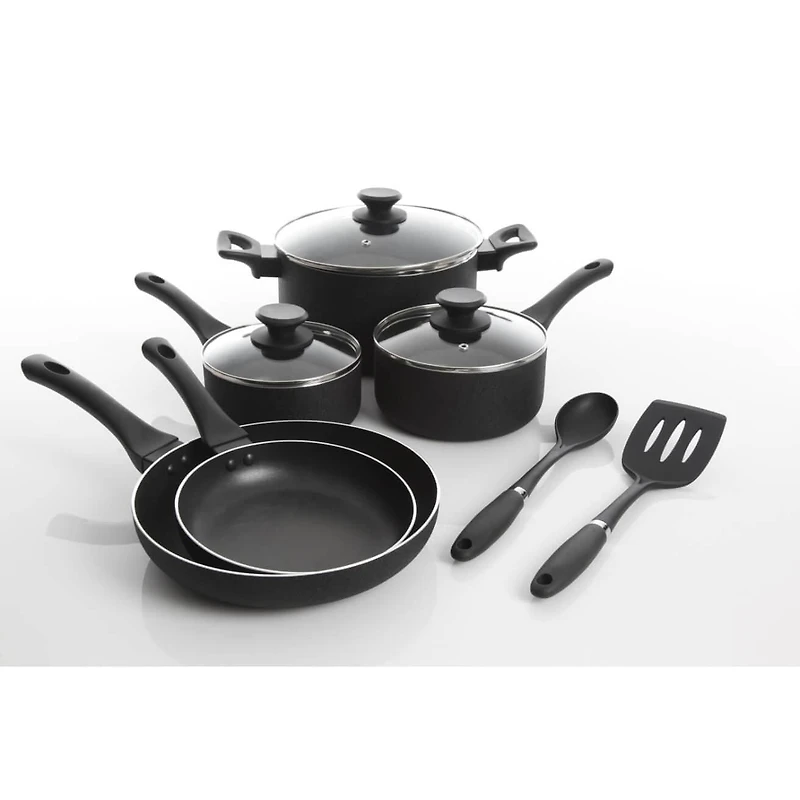 Oster Ashford 10 Piece Aluminum Nonstick Cookware Set, Black with Soft Touch Bakelite HandleOster Ashford 10 Piece Aluminum Nonstick Cookware Set, Black with Soft Touch Bakelite Handle