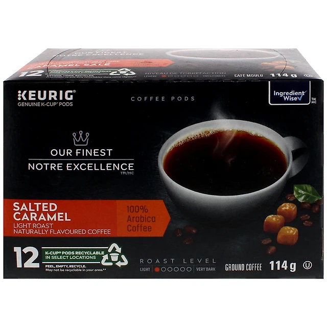 Our Finest Salted Caramel Naturally Flavoured Ground Coffee, 12 K-Cup pods®, 114 g