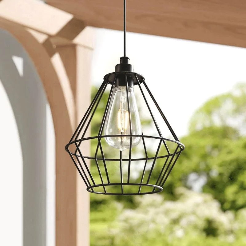 Battery operated, energy is converted. With Battery operated, it is no need for arranging wires. The working life is long. It is suitable and portable for outdoor gazebo, shed, outdoor dining table, or barn as a ceiling light. This pendant light wins in its industrial vintage appearance design and classic atmosphere made by it. Classic design with black hard wire metal cage, it casts a beautiful shadow. When this ACRAFT metal cage pendant light is hung in your patio, the contrasting shades enter into a captivating dialogue and yet clearly belong together.