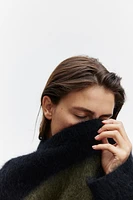 Oversized sweater in a soft knit with mohair and wool content. Dropped shoulders, long sleeves, and ribbing at neckline, cuffs, and hem.