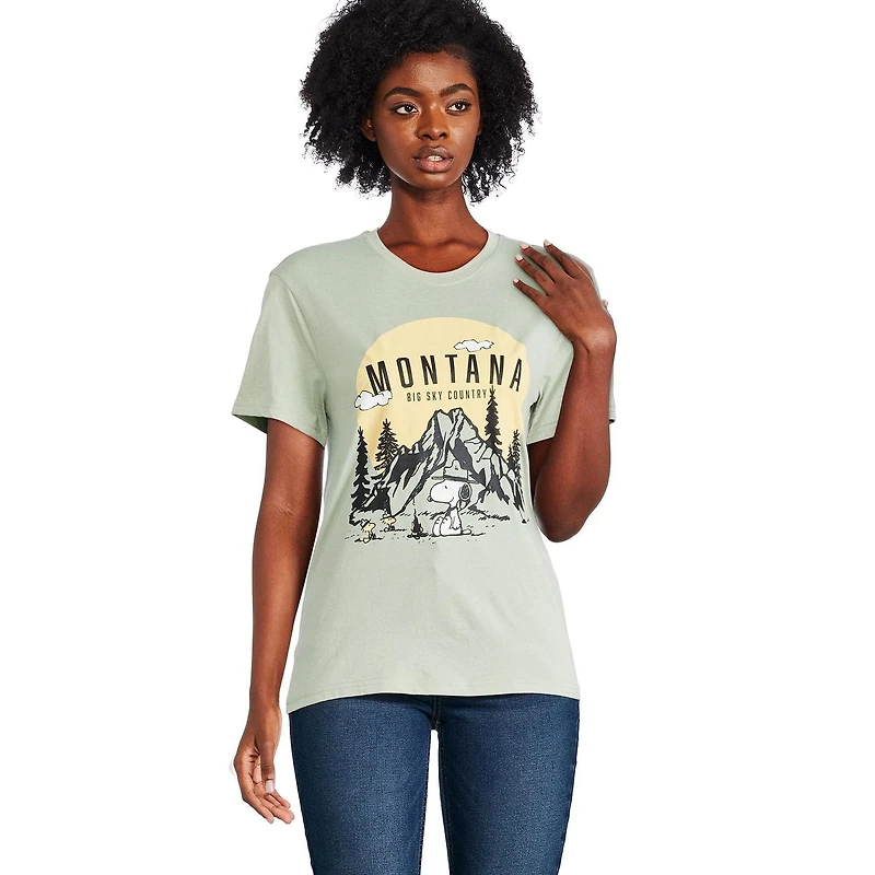 From road trips to movie nights on the couch, Peanuts women’s Snoopy boyfriend fit tee has you covered. Made from soft jersey knit, it's comfy for all-day wear whether you’re running errands or lounging around at home. This tee is designed with a classic crew neckline, short sleeves, slightly dropped shoulders, and a fun front graphic print. Finished with a straight hem and a boyfriend fit, it pairs perfectly with jeans or joggers for a casual look.