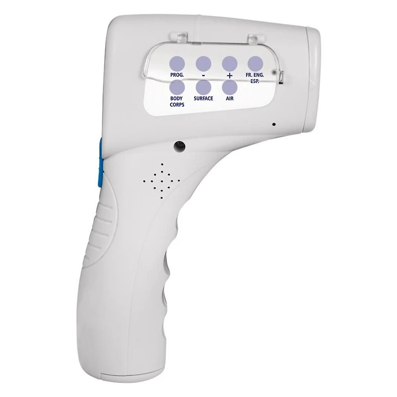 Physio Logic ProScan Non-Contact Infrared Digital Thermometers provide professional accuracy for temperature readings you can trust. In less than one second, the ProScan Thermometer provides non-contact, probe-free readings 1"- 2” (3 cm - 5 cm) from the forehead. This digital thermometer has a color-coded screen light that alerts you of a fever (red), low fever (orange), or lets you know that the reading is normal (green). With the easy One-Button operation and large Easy-To-Read 3 Digit LCD, results are displayed in either Fahrenheit or Celsius. Complete with fully programmable alerts, the ProScan can be used to prevent scalding from food or hot water. The Physio Logic ProScan Infrared Thermometer has a audio alert and voice feature the can be set to English, French, Spanish or mute and conveniently stores your last 31 readings and requires no probe covers. The ProScan's ergonomic design makes temperature readings easier for the whole family. Package includes 1 infrared digital thermometer, 2 batteries and illustrated instructions Model # 016-660