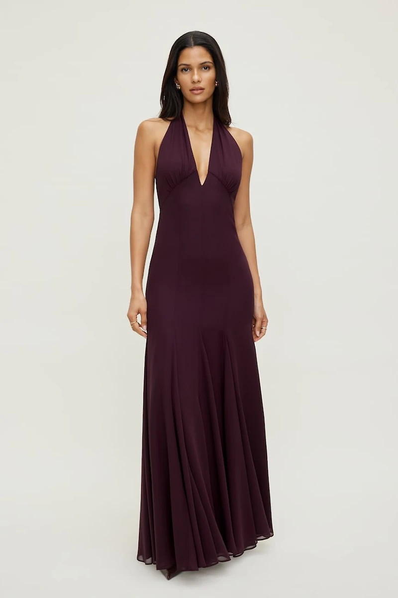 Plunging Flared Maxi Dress
