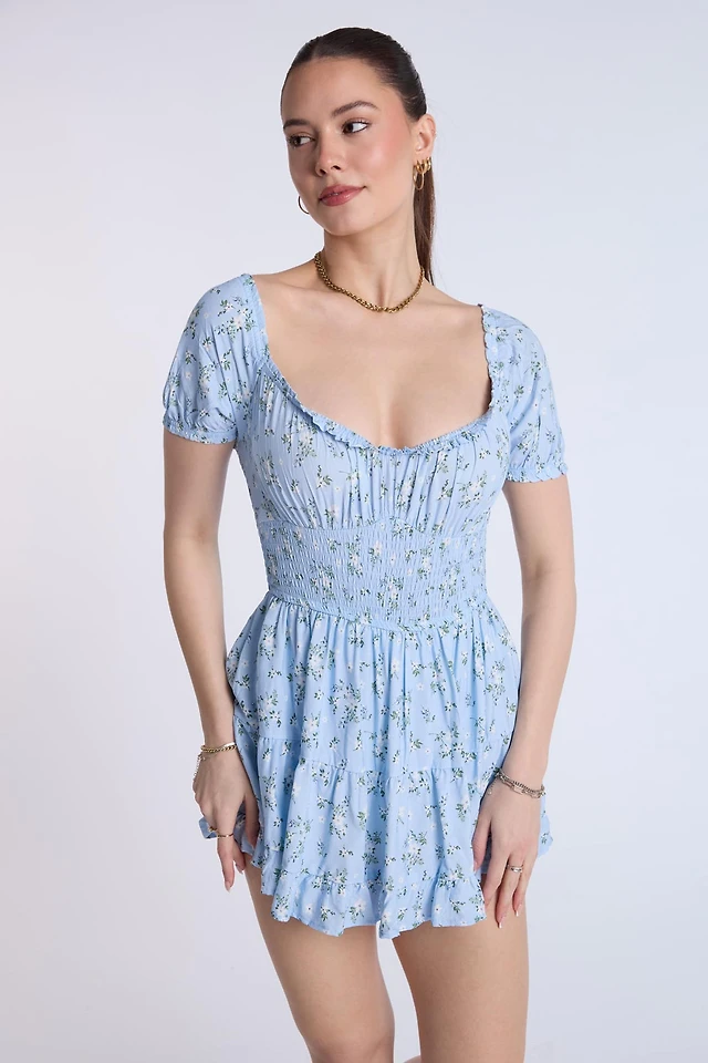 AERO Long Sleeve Smocked Mini Dress