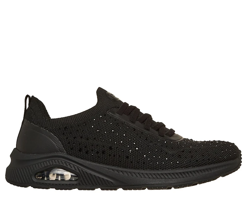 Long-lasting support and comfort takes center stage with Skechers Street™ Relaxed Fit®: Arch Fit® UNO - Starla. This rhinestone-embellished fashion sneaker features a Stretch Fit® engineered knit upper with no-tie stretch laces, a Skech-Air® visible airbag midsole, and a removable Arch Fit® insole.
