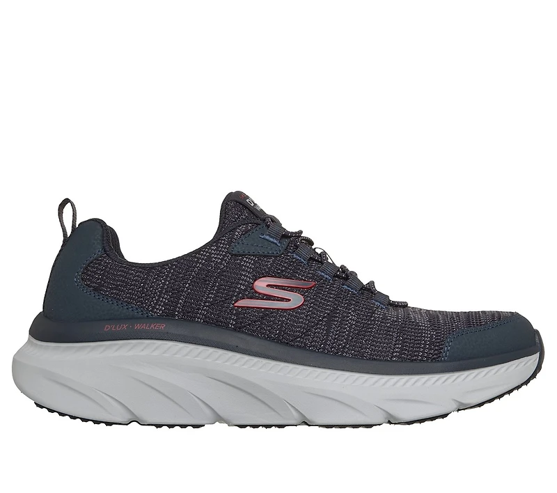 Enjoy longer walks with well-cushioned comfort wearing Skechers Relaxed Fit®: D'Lux Walker® 3.0 - Brexon. This sporty vegan style features a roomy knit and synthetic overlay upper with no-tie stretch laces and a cushioned Skechers Air-Cooled Memory Foam® insole.