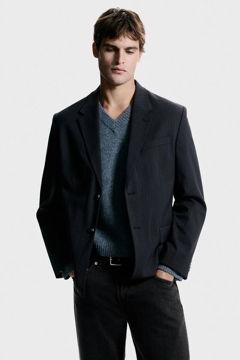 Relaxed-fit, single-breasted jacket in soft, woven fabric with a casual, but not oversized silhouette. Notched lapels with decorative buttonhole, two buttons at front, and decorative buttons at cuffs. Welt front pockets with flap, a chest pocket, and two inner pockets. Double vent at back. Lined.