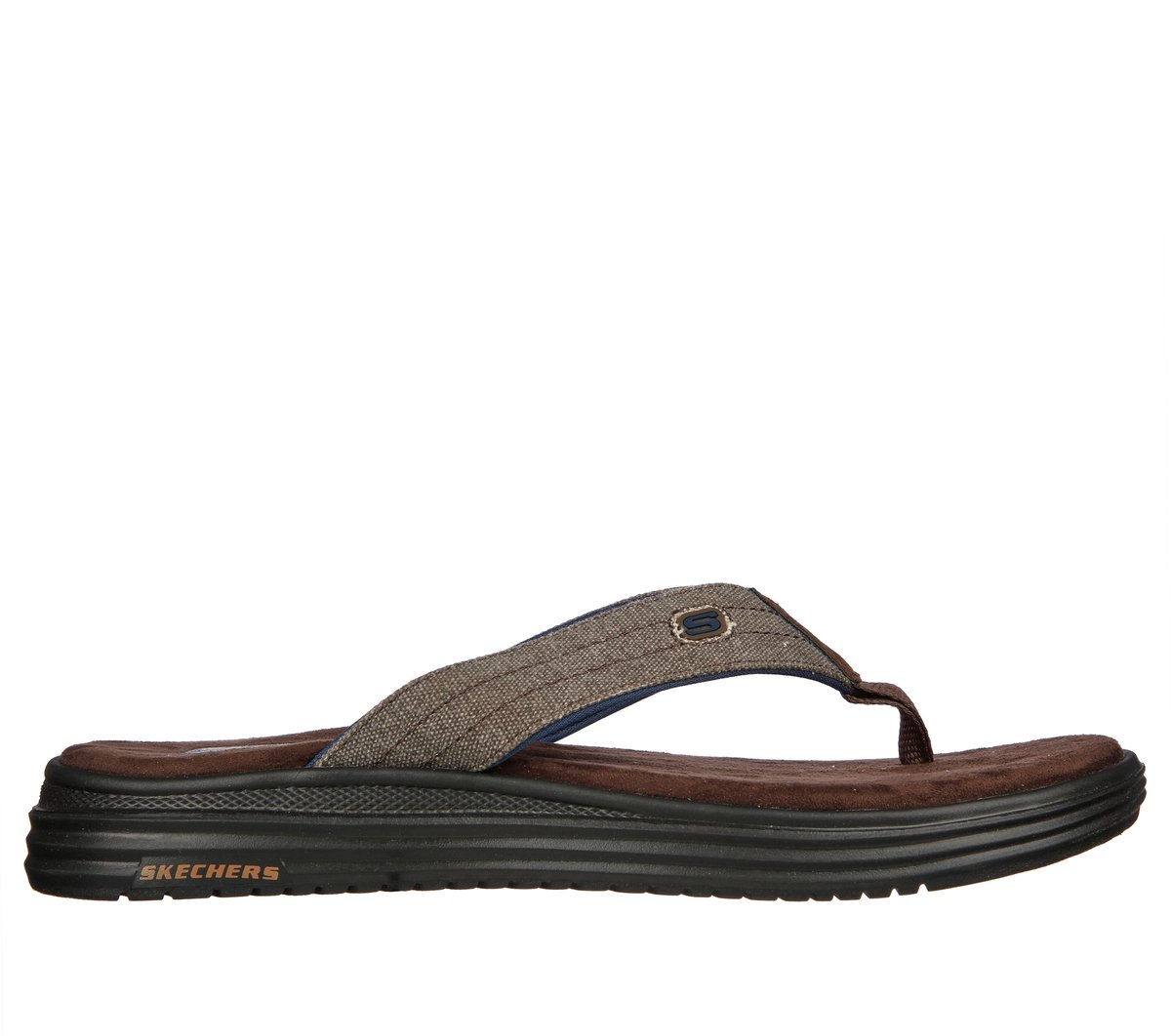 Sunny-weather comfort and classic style combine in Skechers Relaxed Fit®: Proven SD - Radnor. This sandal features a thong strap canvas upper with a Luxe Foam® footbed and a cushioned midsole.