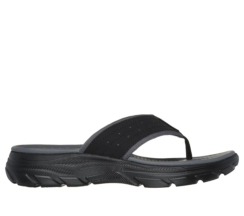 Sunny-weather comfort and classic style combine in Skechers Relaxed Fit®: Revolted SD - Mavis. This sandal features a thong strap synthetic upper with a Luxe Foam® footbed and a cushioned midsole.