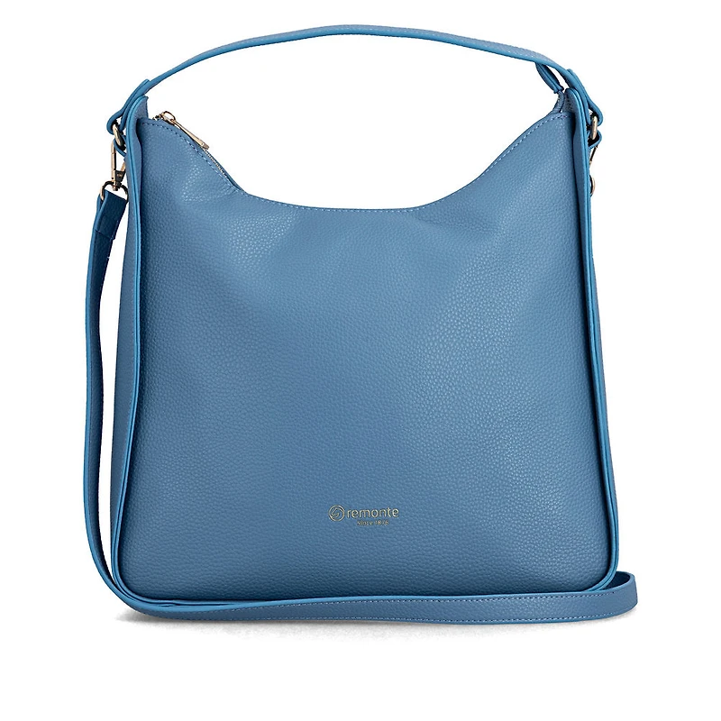 Simple design, striking colour. This remonte handbag in a trendy shade of blue is the perfect companion for anyone who wants to add a splash of colour to their everyday life. Whether carried as a handbag or casually as a crossbody bag, it is the perfect companion for any situation. Golden details give the bag an elegant touch. The spacious main compartment offers room for all your essentials, complemented by two open slip pockets and a zipped compartment inside for secure organisation of your essentials.