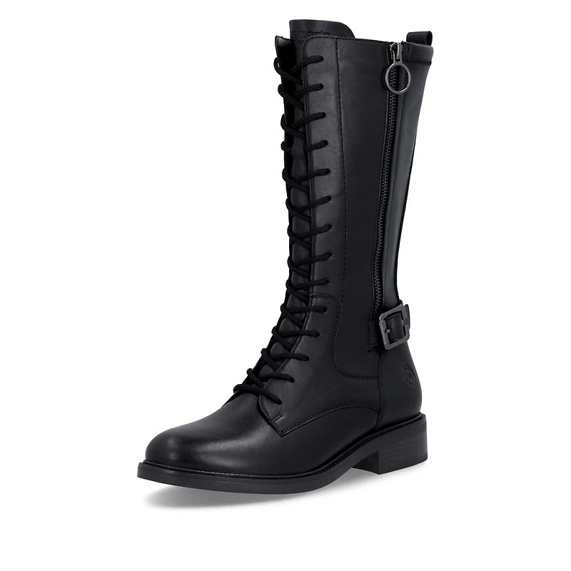 Stylish on the road! These black remonte high boots made of smooth leather will accompany you through the season with style and best comfort. The clever combination of lacing and zipper makes the shoe easy to put on and take off. The padded and removable insole and the cushioning and flexible sole are special goodies on top. You can't get more style than this!