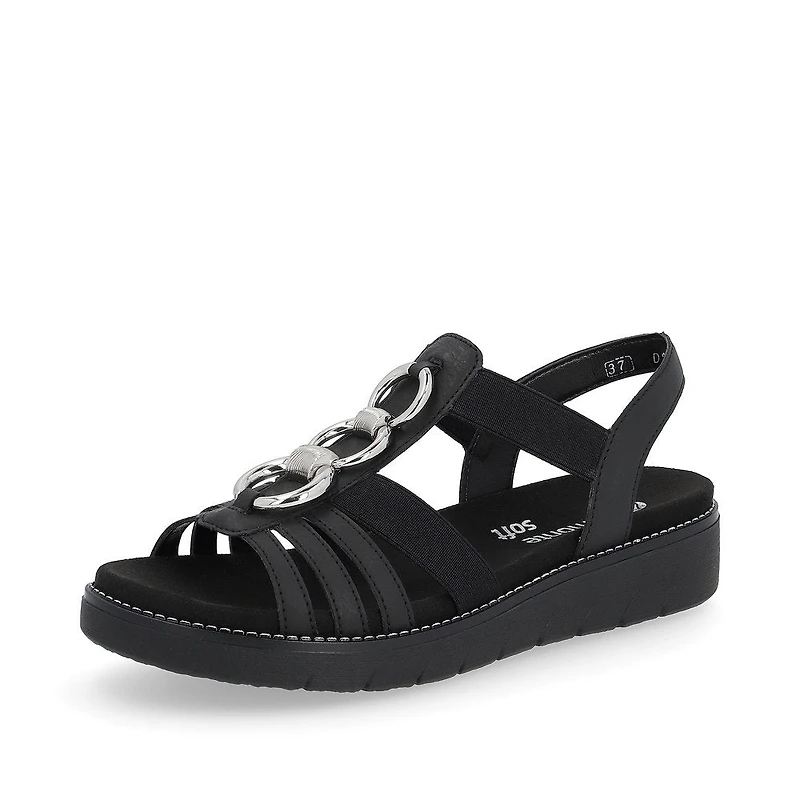 Stay true to your shoe! These baby blue remonte strap sandals will impress fashion-conscious women with their great features. The entry is facilitated by an elastic insert. The middle strap with circular decorative elements is a real eye-catcher. The Lite 'n Soft technology allows for the combination of a lightweight outsole and a soft exchangeable footbed. For all ladies with large feet, the strap sandals are also available in oversizes. Thanks to the light microvelour lining, ideal comfort is guaranteed. Enjoy the warm days!