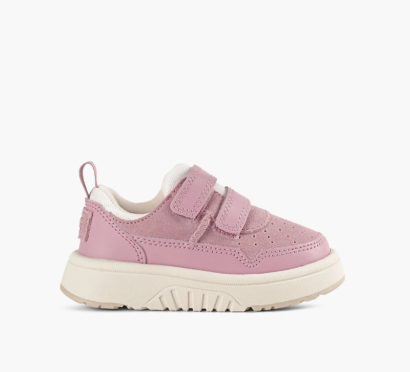 The UGG Rennie Low sneaker is built to keep up with active kids. Featuring a leather and suede upper with iconic Twin Seam detailing, it delivers authentic UGG style. A hook-and-loop closure ensures an easy fit, while the flexible sole and peppermint-based anti-odor lining provide all-day comfort and freshness.