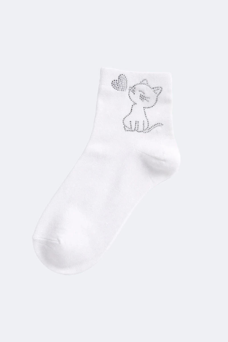 Rhinestone cat ankle socks