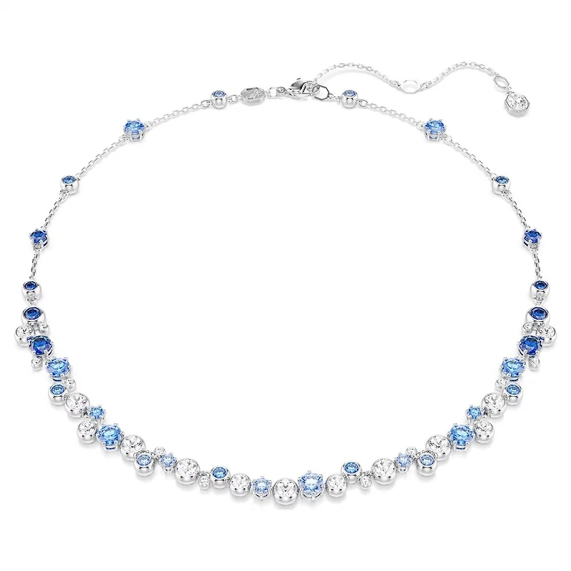 Rhodium Plated Necklace with White and Blue Crystals in Mixed Cuts - 17