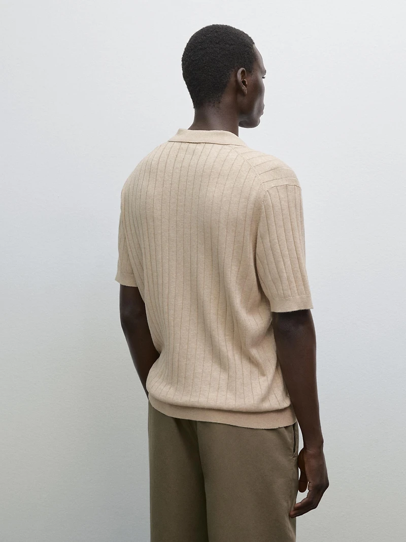 Ribbed knit polo shirt