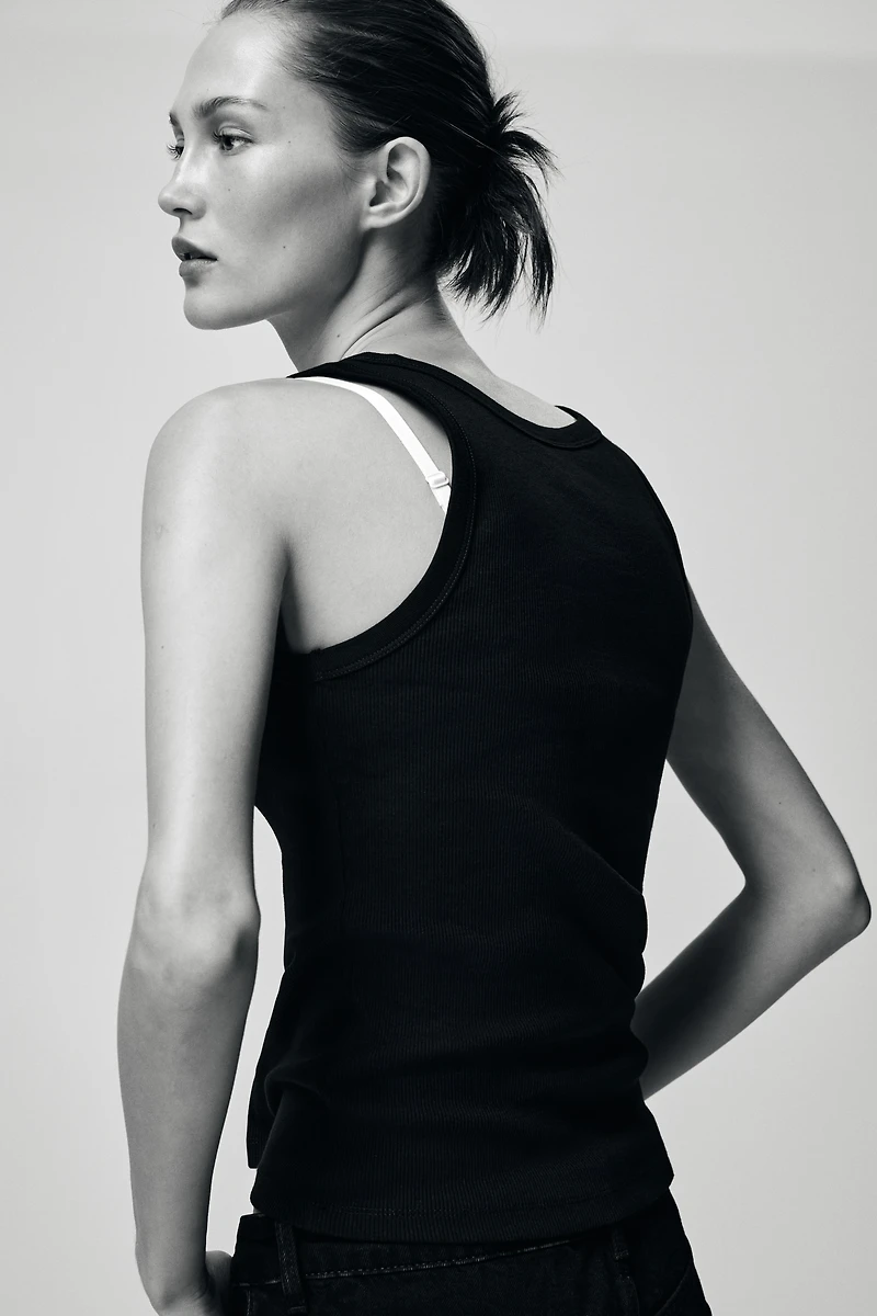 Fitted tank top in ribbed cotton jersey.
