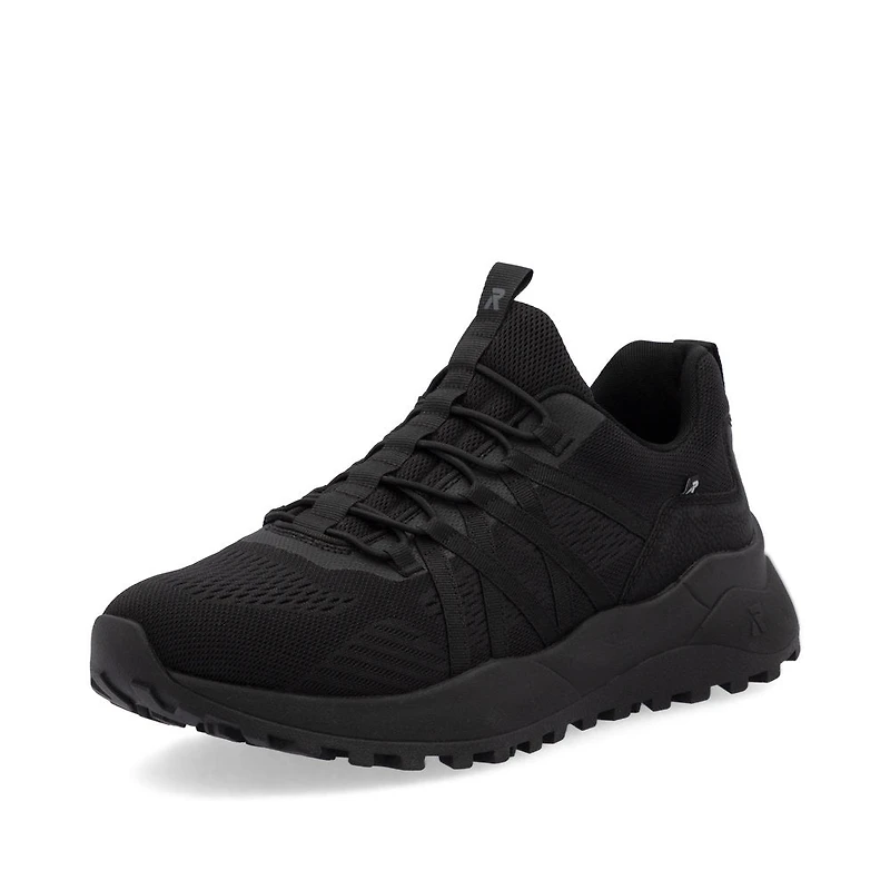 Rieker low-top sneakers in black made from quality textile. The elastic band makes the shoe super quick and easy to put on. EVA/rubber outsole with super light and flexible properties. Padded, removable insole with cushioning properties. Light micro velour and Drysport lining with breathable properties. On top of that, the comfort width guarantees a perfect fit.