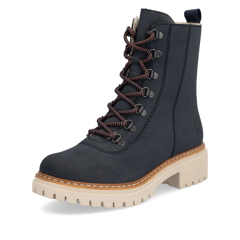 Favourite shoe potential! These dark blue Rieker lace-up boots are a comfortable companion. The shoe is constructed in the stitchdown style, which makes it particularly robust and flexible. Despite the lacing, the shoe can be easily closed by the zipper. The light and shock-absorbing sole promises grip and the extra soft cover sole is another plus. Your feet are guaranteed to stay warm all day long thanks to the soft warm lining. The cold doesn't stand a chance!