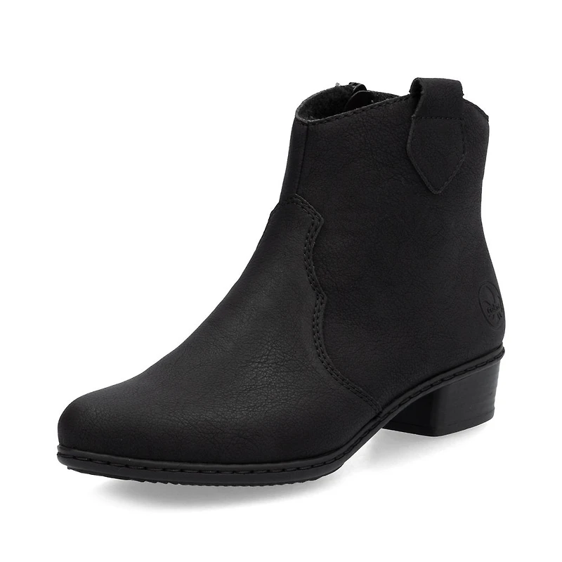 They follow you wherever you go! These night black Rieker ankle boots are perfect for every day. The shoe is constructed in the stitchdown style, which makes it particularly robust and flexible. A zipper allows for a quick and easy entry. The sole with block heel is both shock-absorbing and light, offering a double sense of well-being at every step. Wait for what?