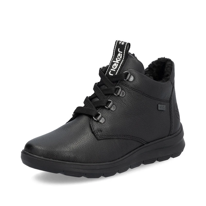 Favourite lace-up shoe potential! These jet black Rieker lace-up shoes made of smooth leather are the perfect buddies for cold days. In addition to the lacing, this model is equipped with a zipper that provides optimal support. The sole is grippy and ensures good traction at all times. The lace-up shoes also score with a padded and removable insole. The RiekerTEX technology and warm lining also guarantee great comfort in any weather. 100% favourite lace-up shoe potential!