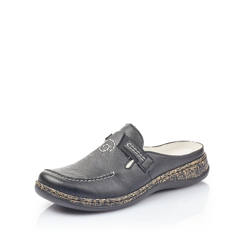 Comfortable and practical! With these black Rieker clogs, you can master your everyday life with maximum style and comfort. This shoe was made using the traditional stitchdown technique, which provides excellent robustness and flexibility. The elastic bands allow for easy donning. The modern decorative stitching gives the shoe that certain something. The shock-absorbing and light sole with wedge heel offers lasting comfort – even on long days. The extra soft cover sole provides additional comfort. Slip in and feel good!