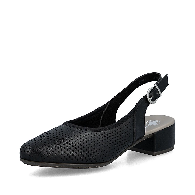 Attention fashion lovers: these white Rieker slingback pumps made of smooth leather are comfortable companions. Thanks to the stitched construction, the shoe is durable and flexible, offering optimum comfort and support. The pumps are fastened with trendy buckles. The elegant decorative perforations add pretty accents. The light and shock-absorbing sole with block heel ensures comfort with every step. Feel your style!