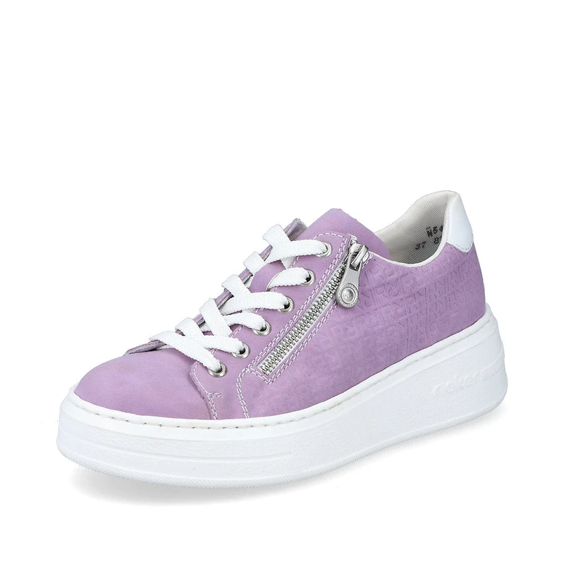 Sporty and modern. You'll be cool and casual on the move in these lilac sneakers. The clever combination of zipper and lacing guarantees an ideal fit and good support. The platform sole is both shock-absorbing and very light, offering a double sense of well-being at every step. In addition, the extra soft removable cover sole provides an extra portion of comfort. Cool, cooler, sneaker by Rieker!