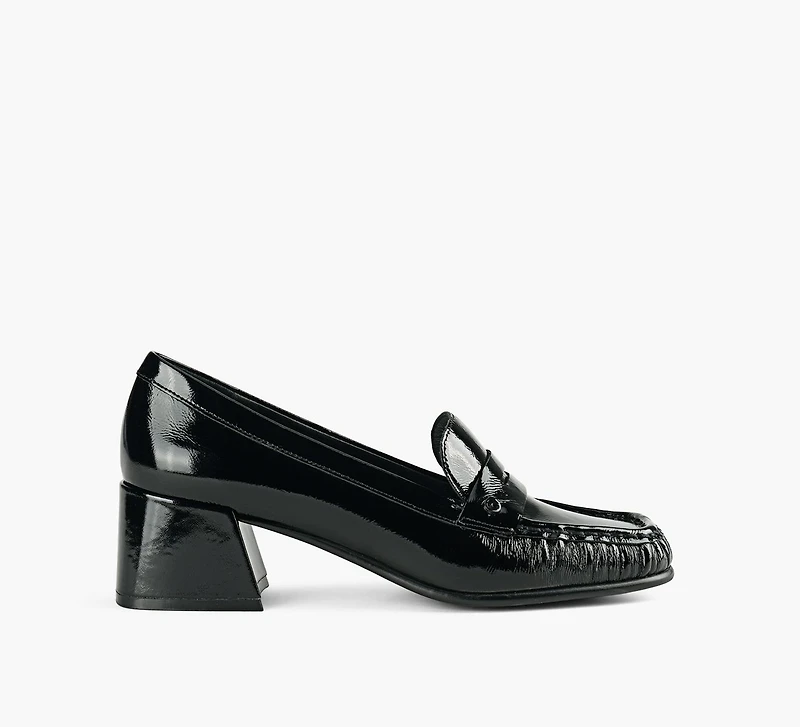 Usually a fan of bold logos and silhouettes, WISHBONE scales things back for its Roberta loafers. Keeping things simple (why change a classic?), the label imagines this pair from glossy patent leather into a sleek, square-toe profile grounded by a comfy block heel. Delicate gathering and clean-cut penny strap stamped with the brand's recognizable logo charm.