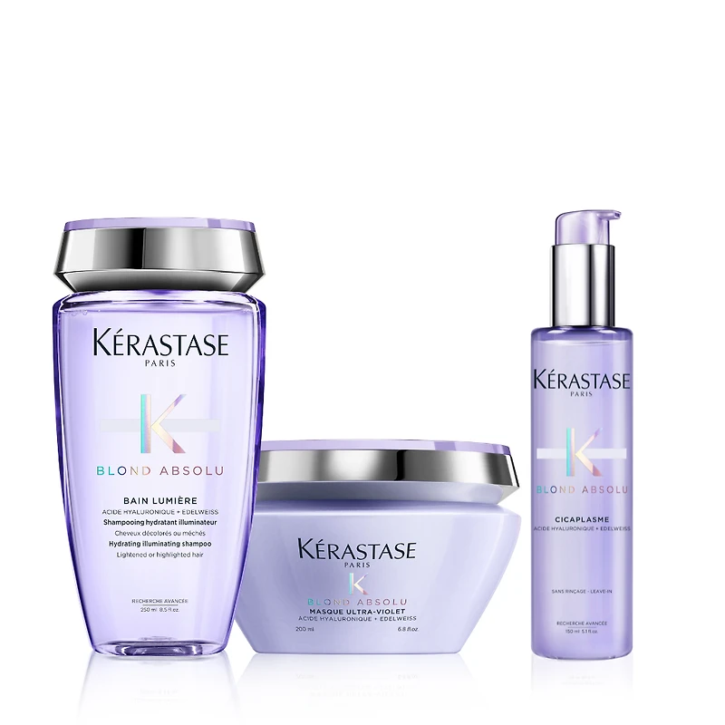 This Blond Absolu illuminating routine is designed to neutralize copper and brassy tones while preserving blonde purity. It gently cleanses, corrects unwanted warmth and enhances fiber radiance for a cool, luminous and even blonde result.