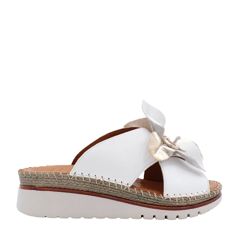 Discover the Kam sandal, a signature design from the Lilia brand. This platform mule embodies the perfect balance between European craftsmanship and bold contemporary style. With its floral leather detailing and ultra-lightweight wedge sole, it’s designed for the modern woman seeking a distinctive shoe without compromising on comfort.