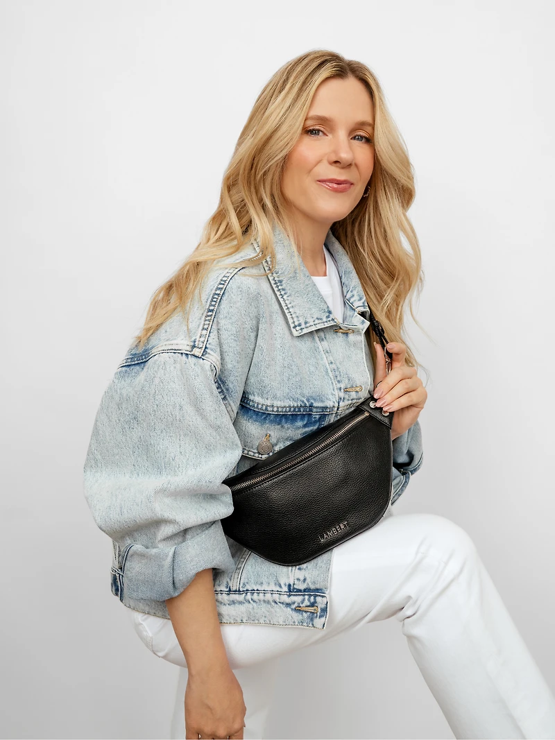 The result of an exclusive collaboration with Sarah Couture, the Sarah fanny pack is ideal for carrying your essentials in total security. With its minimalist design and compact size, this bag is the perfect complement to any outfit. Whether for an urban getaway or a casual evening out, the Sarah fanny pack offers the perfect balance of practicality and style. Dimensions27 cm (width) x 14.5 cm (height) x 5.5 cm (depth) Details:-1 Main compartment-4 Card compartments-1 Back zipped pocket-1 Inside zipped pocket-1 Key clip Composition: Exterior: 100% polyurethane Interior: 100% polyester