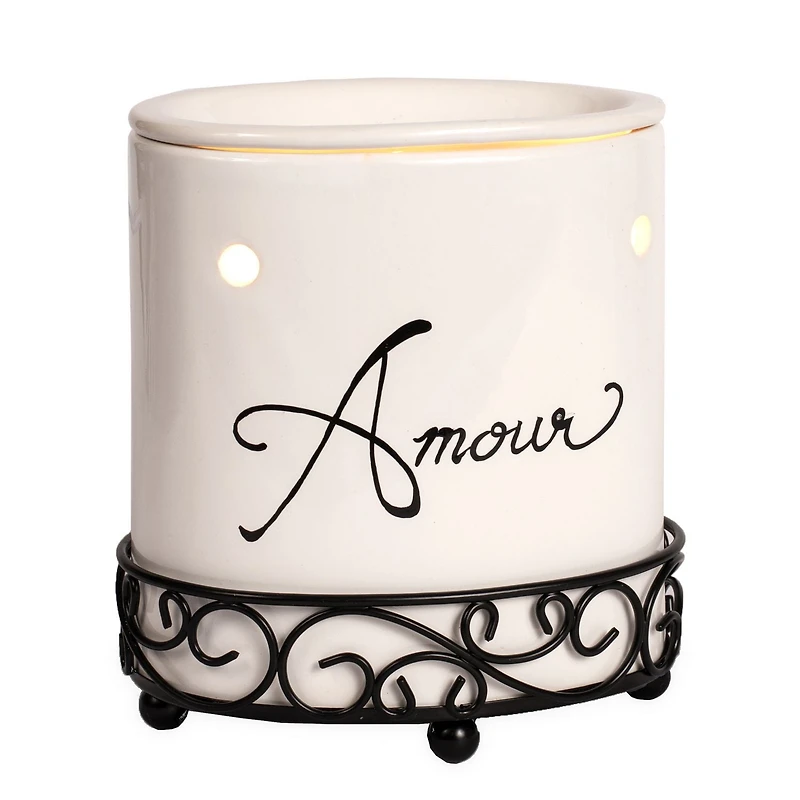 The ScentSationals Amour Full-Size Wax Warmer brings style and functionality to your home. It gently melts scented wax, releasing aromatic scents that fill an entire room with inviting warmth. It produces a soft glow from inside the warmer when plugged in. The soft 25W light provides a relaxing, decorative atmosphere and melts your choice of fragrance wax cubes. The fragrance wax warmer creates a relaxing atmosphere while giving you a safe heat source to melt your choice of fragrance. The use of an electric light makes this a safe way to heat your fragrance with no soot or residue. This ScentSationals Wax Warmer is perfect for adding the right amount of ambiance and fragrance to your space.(ScentSationals Wax Cubes Sold Separately)