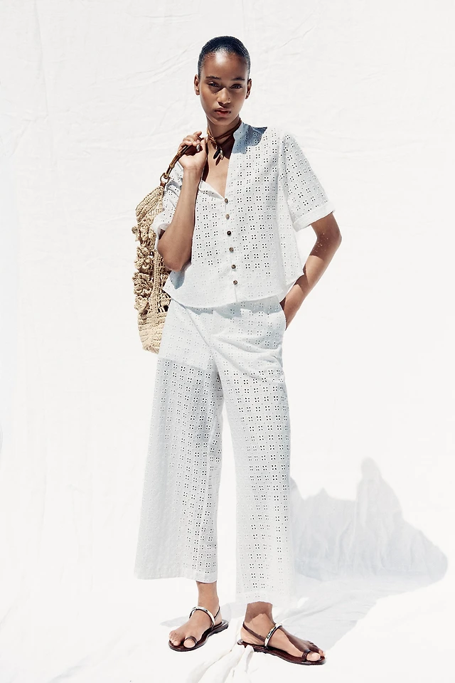 SHORT SLEEVE EYELET EMBROIDERED SHIRT