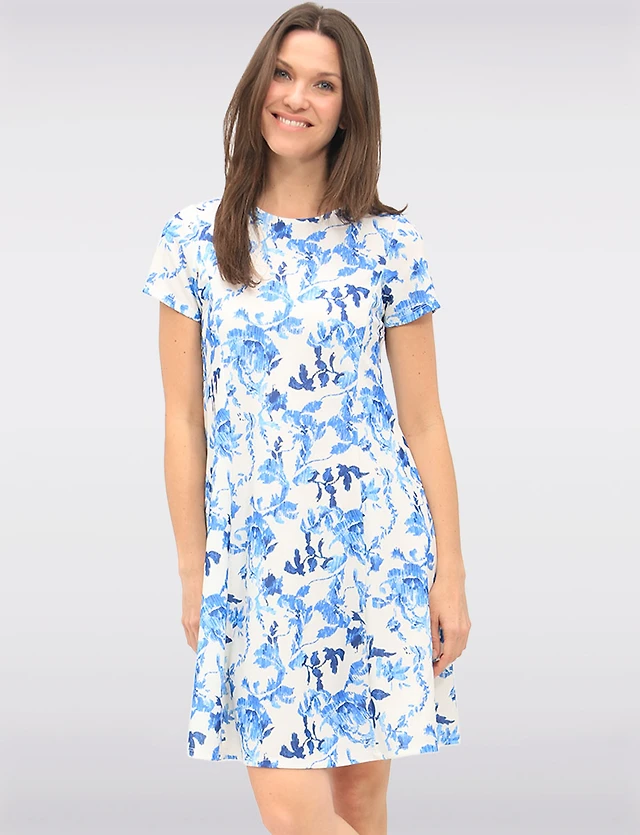Short Sleeves Floral Printed Knee-Length Dress Princess Seams by Vamp