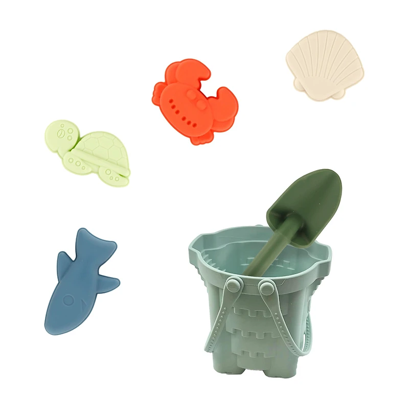 Features:It is lightweight and easy for children to handle in any sand environment!In addition to the bucket, it comes with a shovel and four unique sandcastle molds!This small bucket set is recommended for children aged 18 months and up!