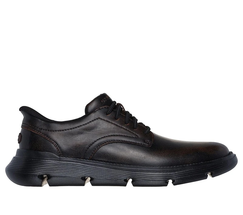HANDS FREE SLIP-INS FROM SKECHERS™ Classic laidback style and effortless comfort meet in Skechers Hands Free Slip-ins®: Garza - Duran. Designed with our Heel Pillow®, this moc toe slip-on features a leather upper with fixed stretch laces, a charcoal-infused Skechers Air-Cooled Memory Foam® insole, and Memory Arch™ for added support.