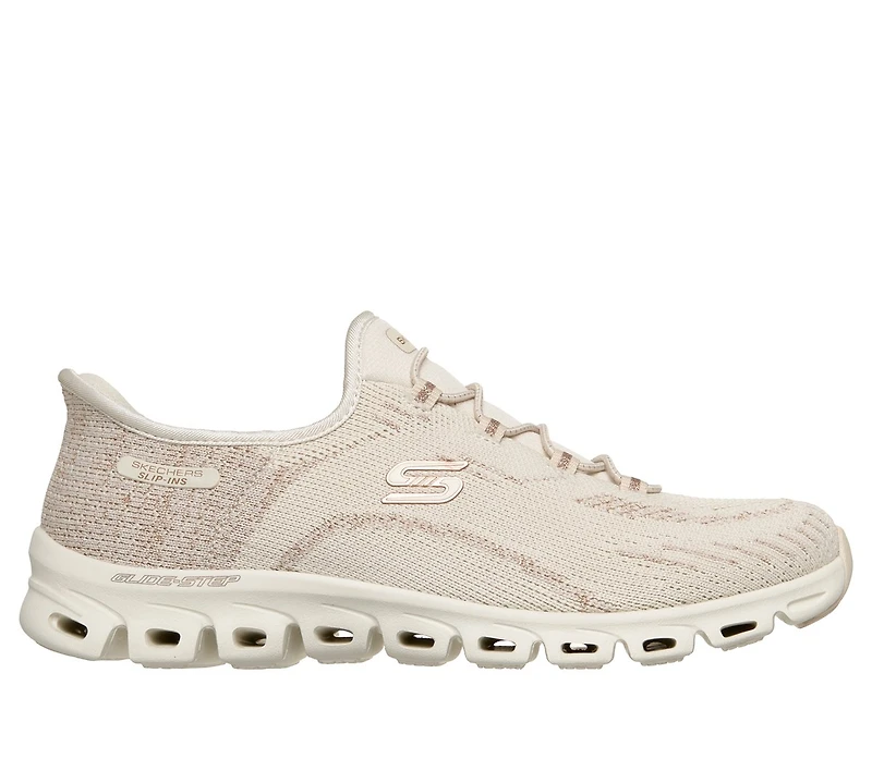 Slip into effortless comfort with Skechers Hands Free Slip-ins®: Glide-Step® - Copper Bloom. Designed with our Heel Pillow®, this casual vegan slip-on features a knit upper woven with copper yarns, fixed stretch laces, a Skechers Air-Cooled Memory Foam® insole, and our geometric Glide-Step® midsole.