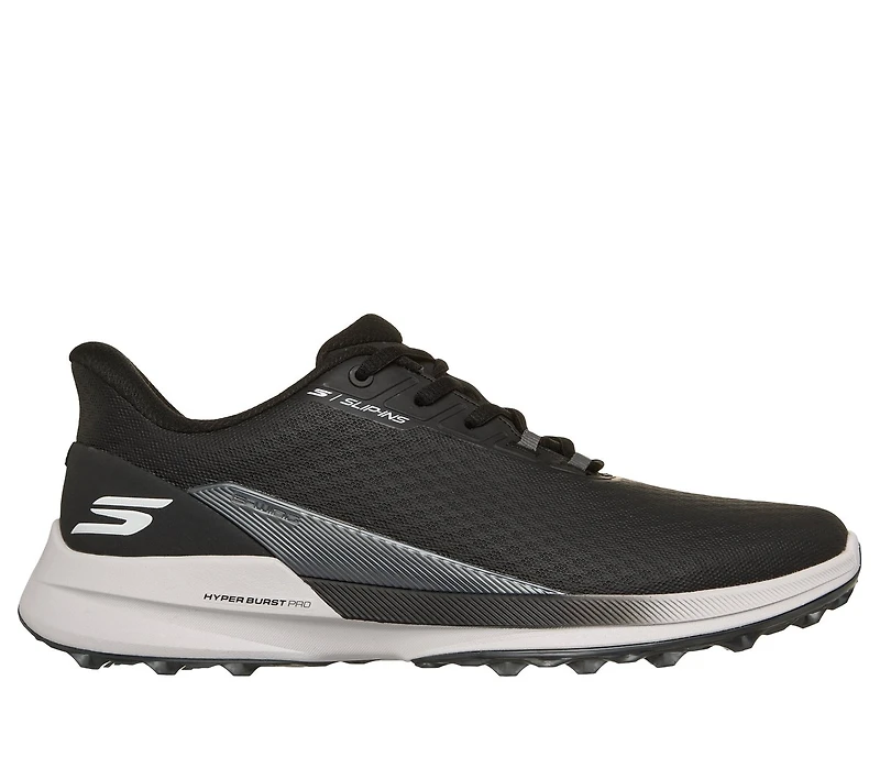Experience unmatched comfort on the course with Skechers Hands Free Slip-ins® Golf™ Waterproof: Pure SI™. Designed with our Heel Pillow®, this waterproof golf slip-on features a sleek synthetic upper with adjustable laces, a supportive Arch Fit® insole, lightweight ECO FLIGHT™ cushioning, and a responsive HYPER BURST PRO™ insole. Complete with a spikeless outsole for superior traction and S-Wing technology for added stability.