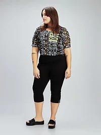 Slim-fit capri pants with two front pockets and topstitching along the leg, as well as a small slit at the hem.