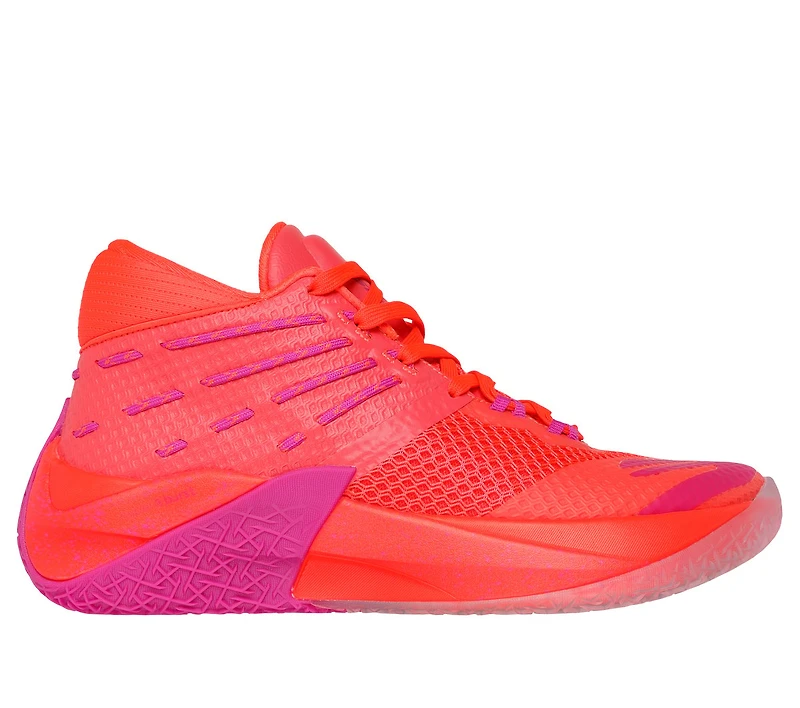 Take your game to the next level with Skechers Basketball®: SKX REIGN™, footwear engineered to promote a quick first step, speed, and intense traction. This mid-top lace-up features a comfort collar, lock-down heel, and a strategically-placed mid-foot wrap for players who prefer more stability. The design is enhanced with a resilient Skechers HYPER BURST PRO™ sock liner, a dual-density Skechers HYPER BURST® midsole, a carbon-infused plate for explosive take-offs, and a Goodyear® Performance Outsole for superior grip and long-lasting durability.
