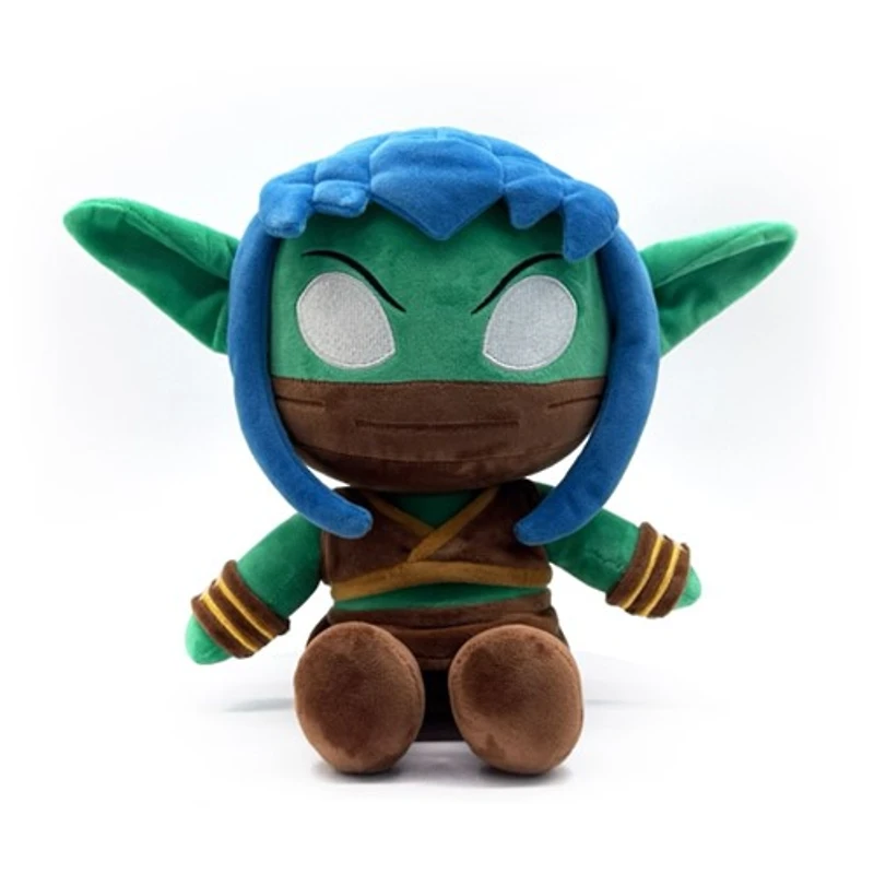 It’s time to become a Portal Master again! Except this time, you’re summoning Stealth Elf to the real world with her plush debut! Sitting at 9 inches tall with bright white eyes shining from above the brown mask that covers her mouth. A pair of long ears stretch out from either side of her head as vibrant blue hair falls down either side of her face and is pulled into a long braid at the back. Dressed for the nimblest of missions, she wears a brown top with a matching skirt, boots and wristguards that have a light brown trim. This plush is packed to the seams with 100% PP cotton and is made of the softest minky material with accents of felt, absolutely perfect for cuddling as you save The Skylands!