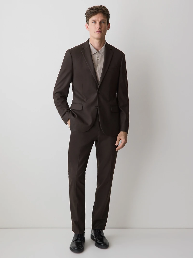 Slim Fit Dark Brown Brushed Twill Blazer