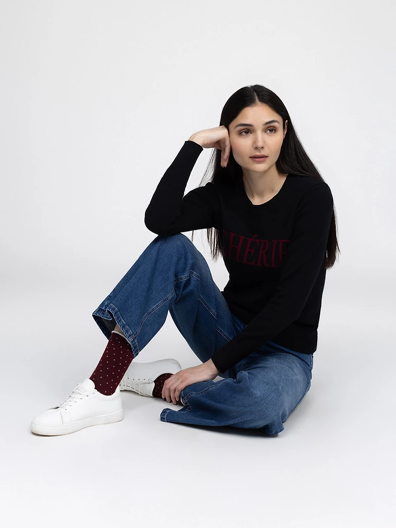 Socks with evenly distributed contrasting polka dot motif across the surface. The design features a standard-height leg and a contrasting upper edge with a wavy finish.