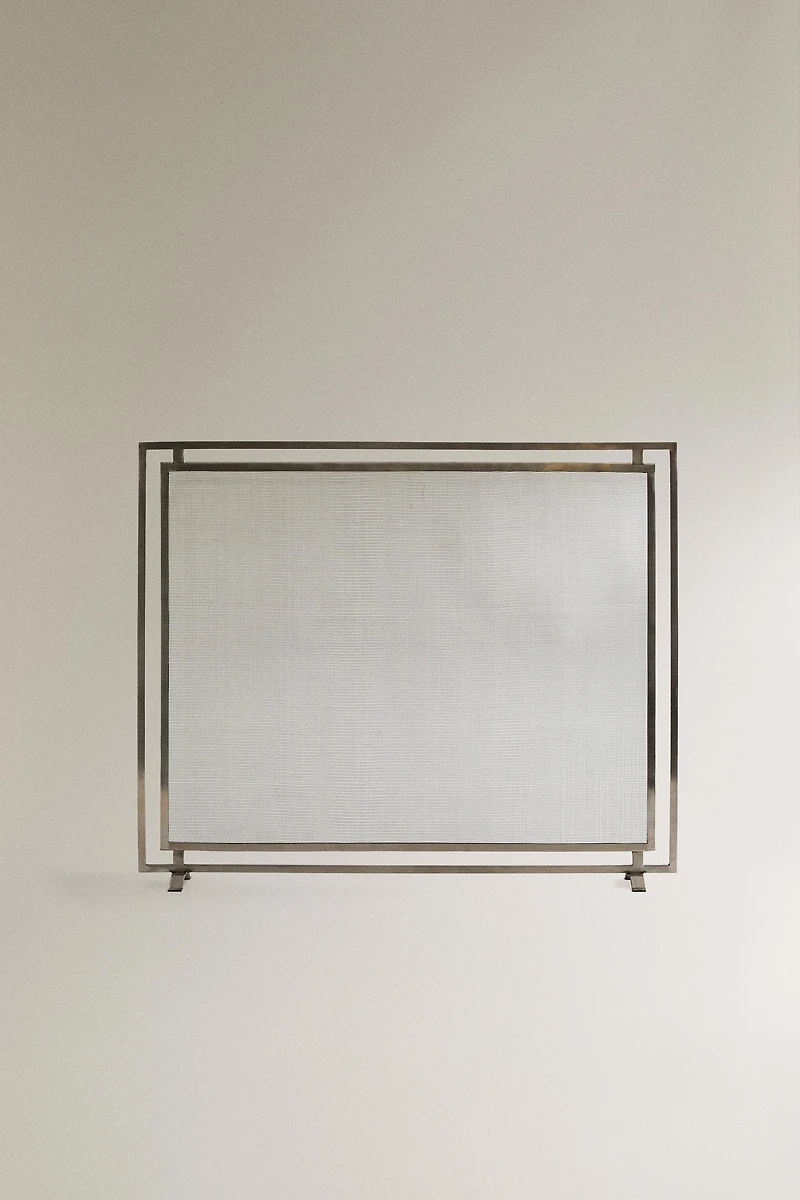Steel spark guard with a rectangular structure and support legs. Protects against fire and sparks.