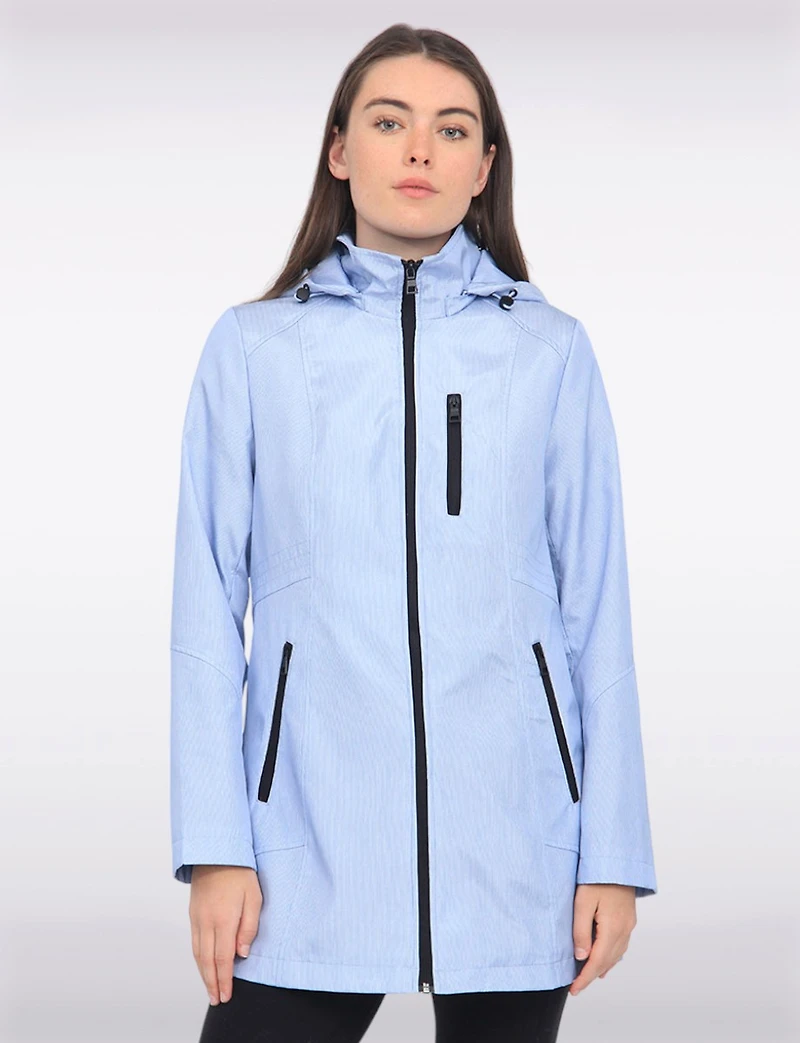 Straight Cut Striped Detachable Hooded Water-Resistant Coat by Portrait