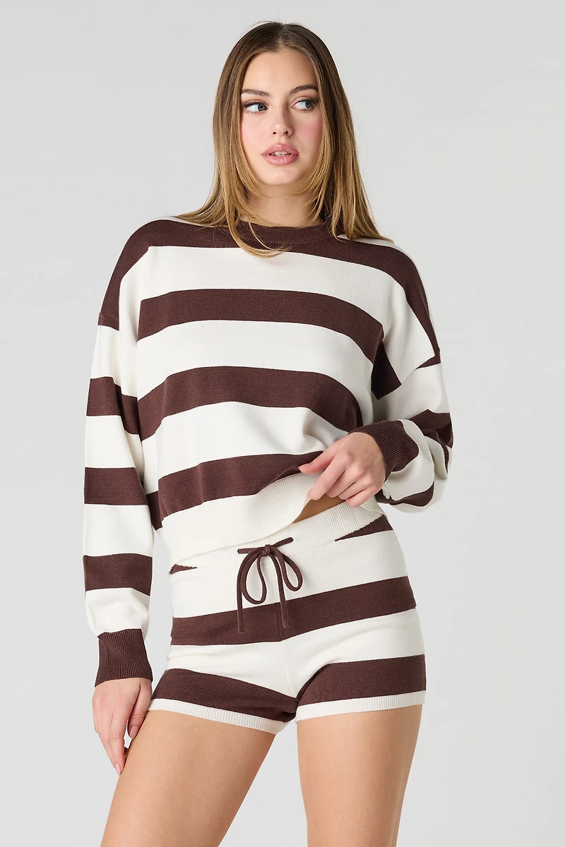 Striped Knit Long Sleeve Top & Short Set