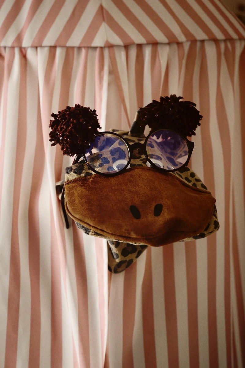 Reading nook in woven fabric with a printed design. Pointed canopy with ties at top and a concealed plastic ring or added stability. Lightly padded base. Supplied with a drawstring storage bag.