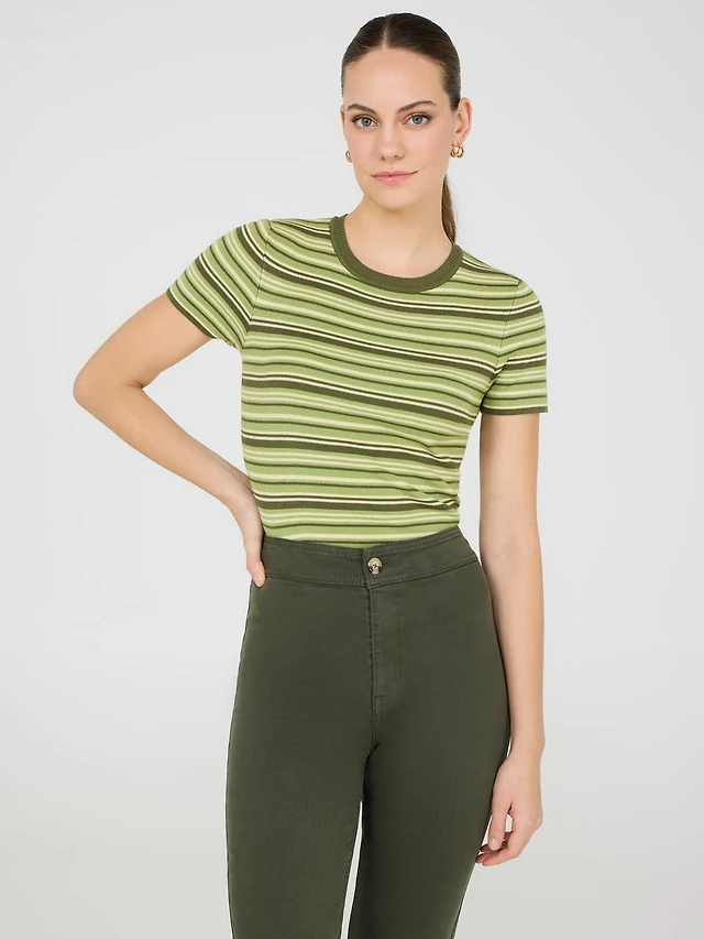 STRIPED SHORT SLEEVE KNIT JUMPER